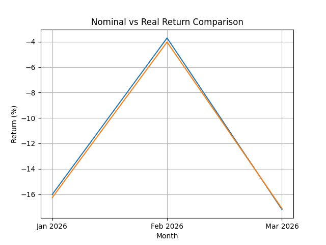 When interpreted through a commodity lens, the relationship between nominal and real returns is instructive. The marginal difference between nominal return (-16.02%, -3.70%, -17.20%) and real return (-16.27%, -4.02%, -17.12%) across the period demonstrates that macro inflation had minimal impact on observed performance. This pattern reflects a key analytical boundary: in low-inflation environments, real and nominal series converge, and the inflation-adjusted framework functions primarily as a validation layer rather than a transformative analytical driver. By contrast, in higher inflation regimes, divergence between these series would become more pronounced, amplifying the importance of purchasing-power normalization.