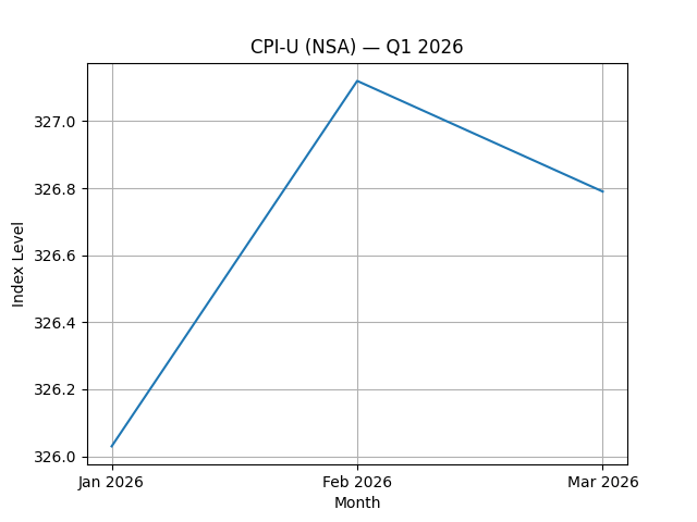 Over the first quarter of 2026, CPI-U exhibited modest variation, moving from 326.03 in January to 327.12 in February, before declining slightly to 326.79 in March, resulting in a quarterly average of 326.65. This sequence reflects a relatively stable macro price environment, with month-over-month inflation readings of +0.31%, +0.33%, and -0.10%, respectively. Taken together, these changes indicate that inflation exerted only a minor influence on purchasing-power normalization during the period, with the CPI series itself displaying low dispersion and limited directional persistence.