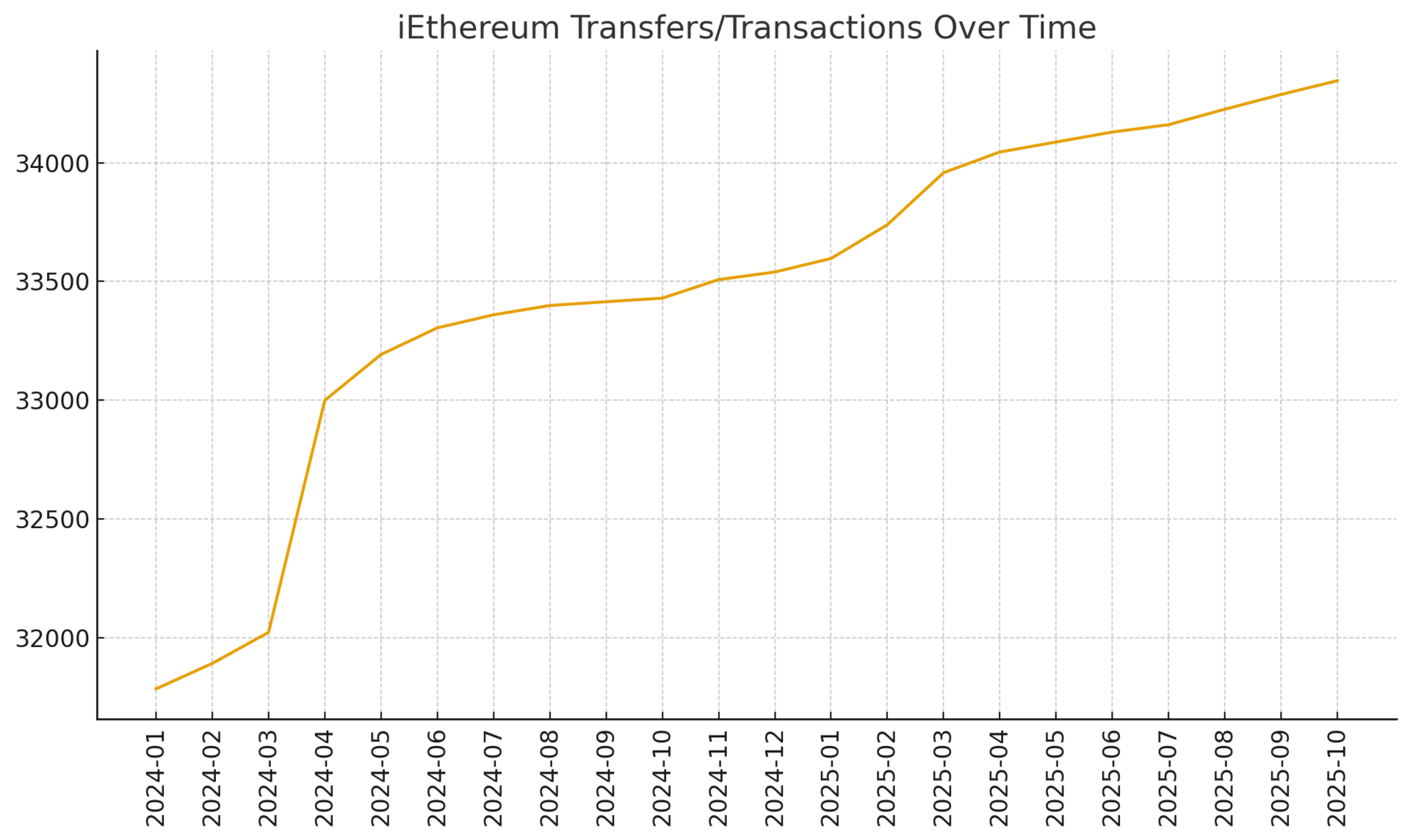 The total transfer count demonstrates commodity-like behavior because it reveals a settlement rhythm detached from price volatility. Commodities with fixed supply—gold, silver, industrial metals—tend to exhibit stable transactional frequency driven by operational use rather than speculative turnover. iEthereum mirrors this: despite changing market conditions, transfers rise gradually, predictably, and with minimal month-to-month distortion. This stability is not characteristic of currency-like or equity-like tokens; it is characteristic of scarce, held, and slowly circulated digital commodities.
