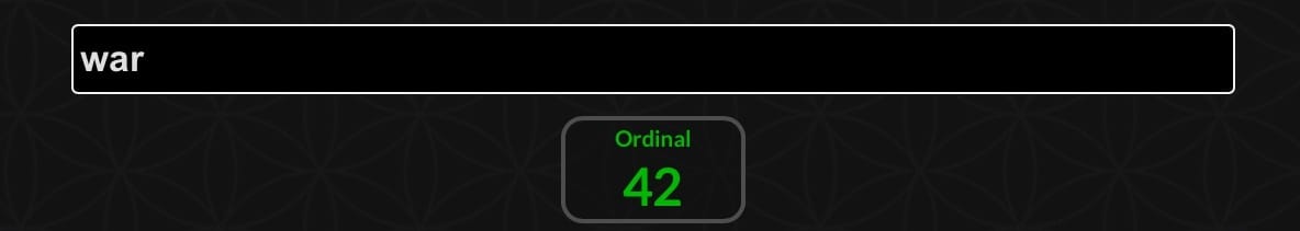 I have to throw this into the riddle as it seems fitting for the times. War equals 42 and may be playing a part in this storyline. We want to document the connection and make a place holder, a clue to our detective senses.
